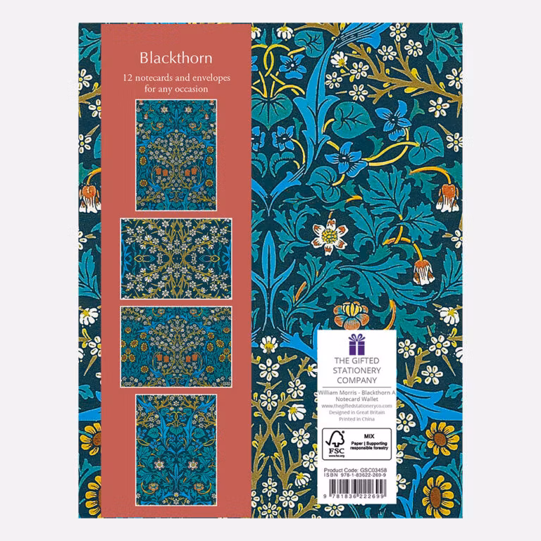 William Morris - Blackthorn Notecard Wallet 89 kr 12 Notecards, 4 olika motiv. Dubbla kort blanka inuti med kuvert (126X176 m.m.).Storlek187X147X16 m.m. Lägg i korgen Artikelnummer: GSC03458 Dela Information 12 Notecards, 4 olika motiv. Dubbla kort blanka inuti med kuvert (126X176 m.m.).Storlek187X147X16 m.m.